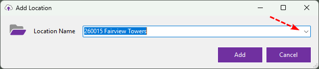 - Note that the Add Location App has assumed that the name of the location should be name of the folder immediately above it. In our example it would be 260015 Fairview Towers