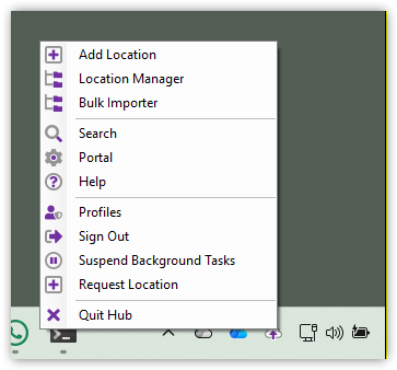 Select Add Location to CloudFiler You should find that this works as expected. If you are a CloudFiler Admin or are in the CF Admin group, when you right-click the Hub icon you should find that you can launch the Location Manager and that it no longer requires a tenant key.