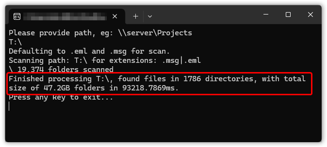 The Folder Scanner is a command-line tool to discover the number of emails in folder structure and their size on disk.