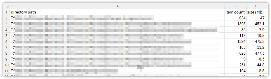 It also generates a CSV detailing the folders found, which it opens automatically at the end of the scan: