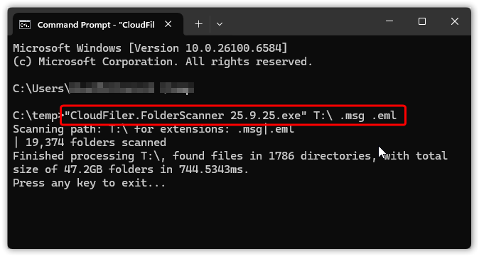 You can run the tool in a Command window and can either provide just the path to a folder or can include the file extensions to search for. In the following example it is searching the same folders as in the example above: