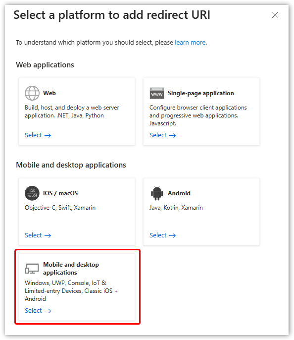 Add the following for Mobile and desktop applications: cloudfiler://auth http://localhost If you have added them correctly they should appear as shown here: