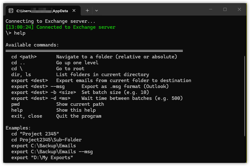 You will see from the Help that you can use DOS style commands to display the folder you are in ( e.g. DIR) and change directory with CD. You can then export the contents to a local or network folder.