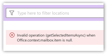 If your Outlook Add-in displays this error, it's typically because you either don't have a reading pane turned on in Outlook, or that you are running an old build of Microsoft365 and and need to update it.