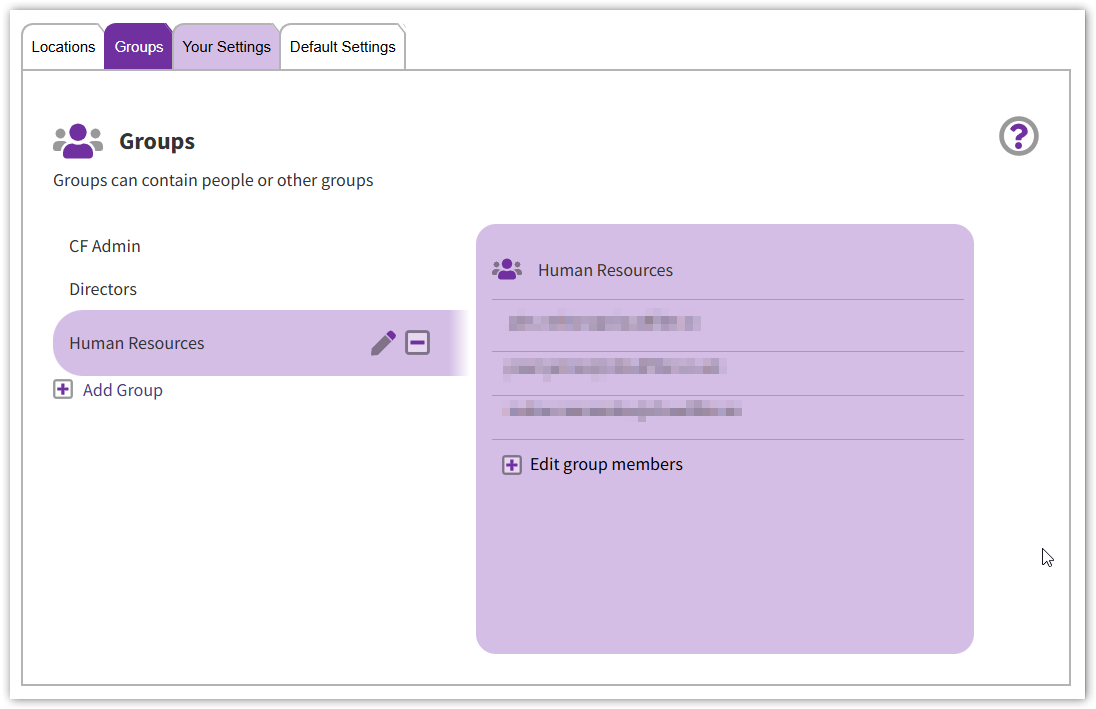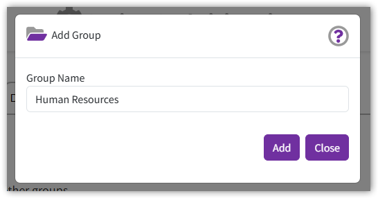 If you don't yet have a Group in CloudFiler for the Human Resources team, click on the Groups tab and then Add Group