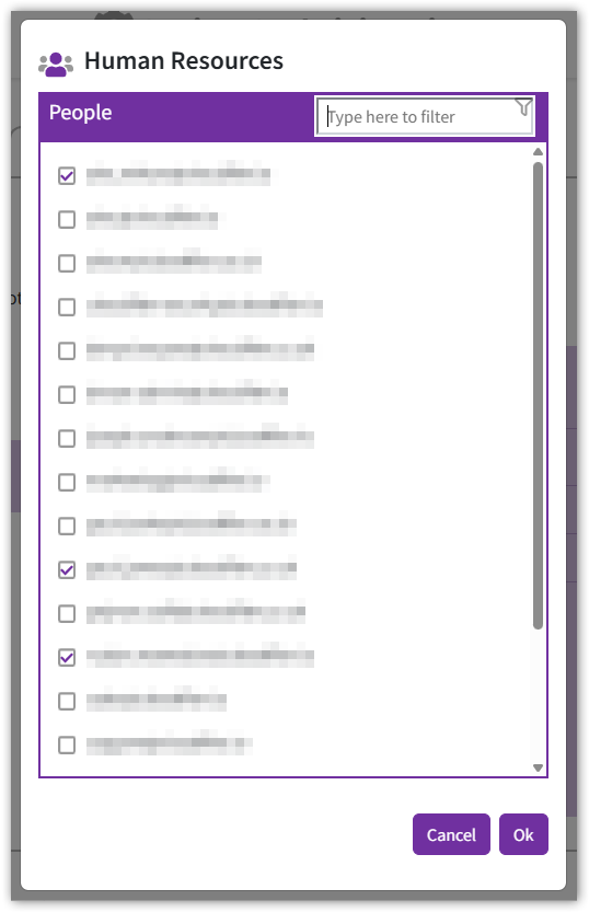 Select the people who are in the Human Resources team and then pick OK