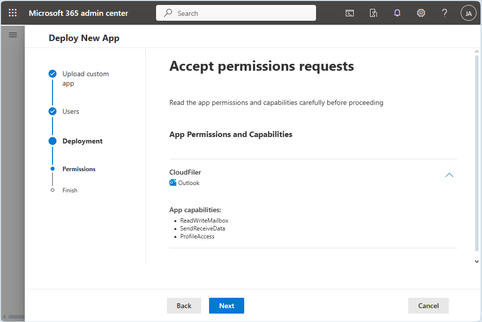 Presenting your CloudFiler Manifest file to your Exchange Online server