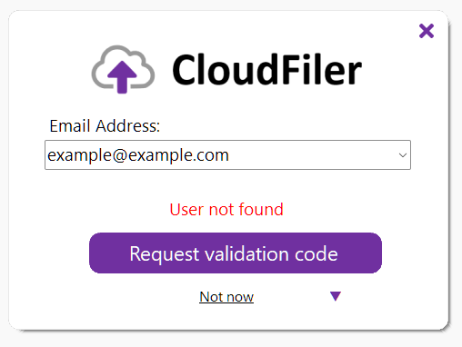 If the email address doesn’t match a user in CloudFiler, they will receive the User not found response.