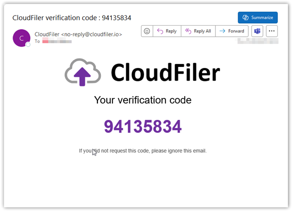 If successful, an 8-digit verification code will be emailed to the user, similar to this: