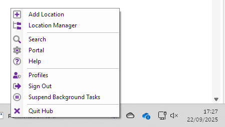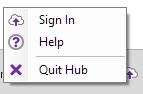 Users can re-authenticate at any time by right-clicking the Hub icon in the system tray.